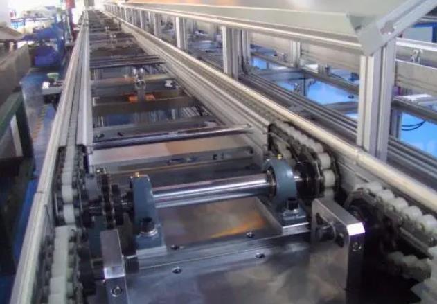 板鏈流水線 :選用鏈板拖牽工件做平面傳送運動,來到達生產工藝意圖。流水線選用組合式安裝形式,工位數可按工藝要求設定。工位裝備有電源插座、工具箱、料盒等,使整個流程到達快遞、有序。