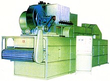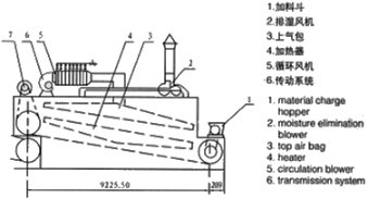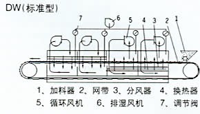 物料由加料器均勻地鋪在網帶上,網帶一般采用12-60目不銹鋼絲網,由傳動裝置拖動在干燥機內移動。干燥機由若干單元組成,每一單元熱風獨立循環,部分尾氣由專門排濕風機排出,廢氣由調節閥控制,熱氣由下往上或由上往下穿過鋪滿物料的網帶完成熱量與質量傳遞的進程,帶走物料水份。 網帶緩慢移動,運行速度可根據物料溫度自由調節,干燥后的成品連續落入收料器中。上下循環單元根據用戶需要可靈活配備,單元數量亦可根據需要選取。脫水蔬菜、顆粒飼料、味精、椰蓉、有機顏料、合成橡膠、丙稀纖維、藥品、藥材、小木制品、電子無器件老化、固化等。 |